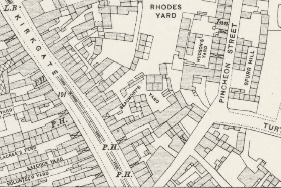 Wakefield had scores of yards like Beaumont’s Yard. They were never designed to house people and its no wonder they were the subject of concern and inquiry throughout the latter half of the 19th C. Essentially the yards were medieval burgage plots – “crofts and tofts” running off the main thorougher fares of Westgate, Northgate and Kirkgate. Many of the yards were behind Wakefield’s numerous inns. As Wakefield’s medieval economy developed the dwellings fronting the street were rebuilt with entrances to the croft’s through a passage. In towns tenants stopped growing crops on the crofts and used the land for cottage industries – malting, baking, brewing, tanning, soap making, stabling. In the 1700s as the industrial revolution gathered pace people migrated from agricultural labour in the countryside to factory work in the towns. The yards were quickly built on to provide basic housing. They were often unpaved bare earthed with no drainage; people relied on wells and cisterns for water until mid century installation of piped water. Most were dead ends. Human, animal and industry waste was dumped in pits or middens which were infrequently emptied by night soil men. Not surprisingly Wakefield suffered from outbreaks of highly contagious diseases such as cholera.